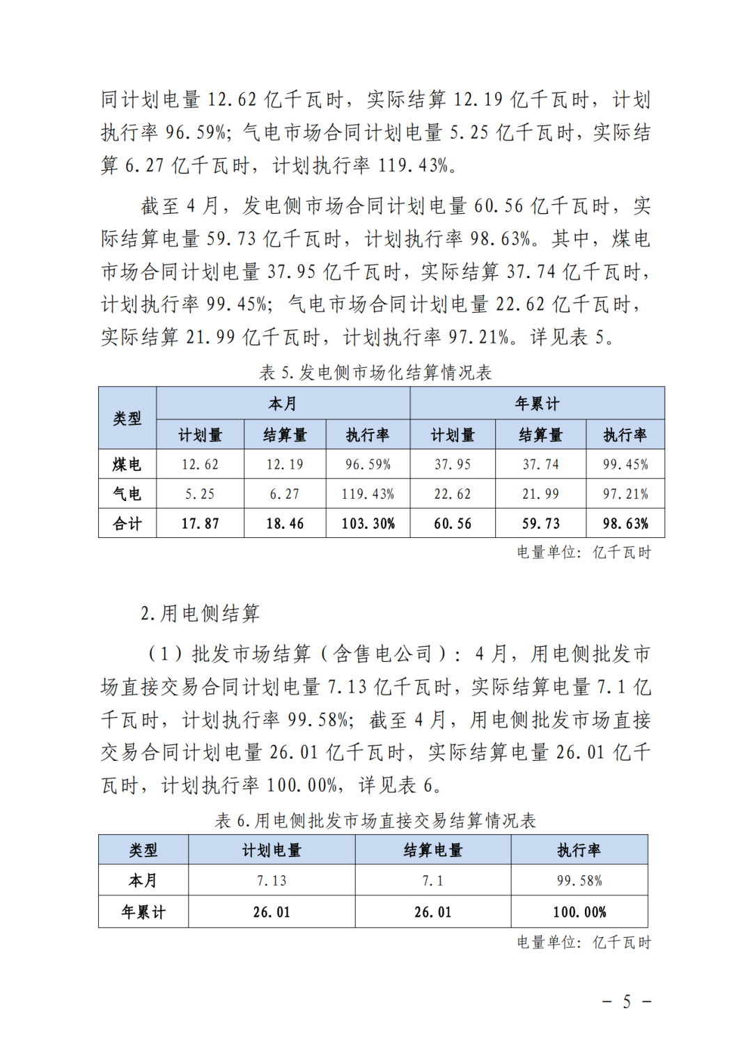 4月份(交易標(biāo)的月),海南省內(nèi)市場化交易電量 17.89 億千瓦時(shí),其中,直接交易成交電量 7.14 億千瓦時(shí),同比增加 72.42%。平均成交價(jià) ...
