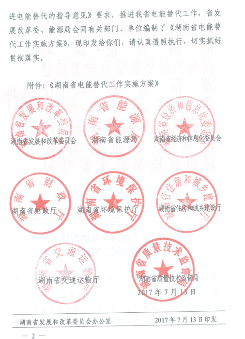 由湖南省發(fā)改委、湖南省能源局、湖南省經(jīng)信委、湖南省財(cái)政廳、湖南省環(huán)境保護(hù)廳、湖南省住房和城鄉(xiāng)建設(shè)廳、湖南省交通運(yùn)輸廳、湖南省質(zhì)量技術(shù)監(jiān)督局八部委聯(lián)合下發(fā)的《湖南省電能替代工作實(shí)施方案》印發(fā)。