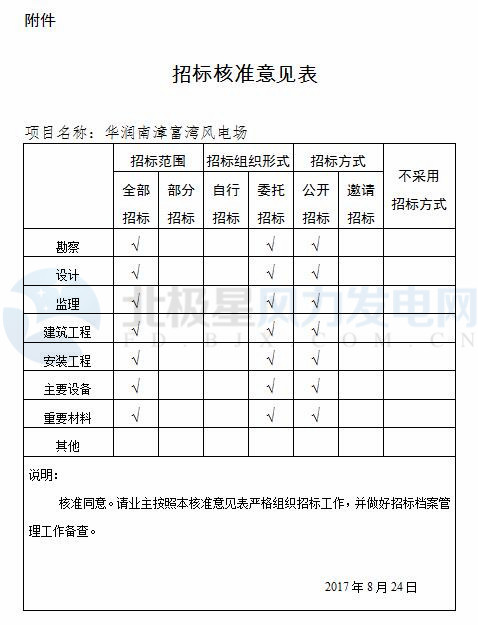 五、請嚴格按照本文核準意見實施招標。招標范圍、招標組織形式、招標方式等要求見《招標核準意見表》(附后)。