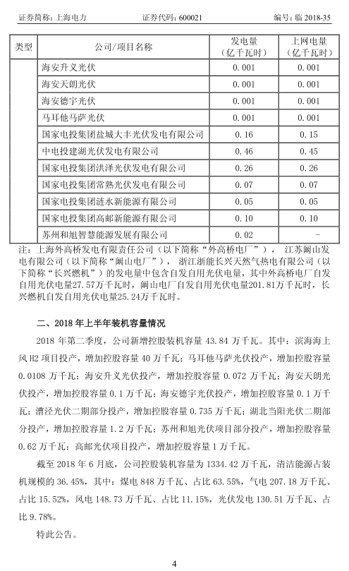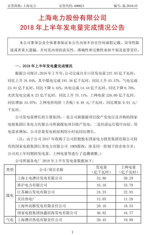 近日,國(guó)家電投旗下上市公司上海電力發(fā)布了2018年上半年發(fā)電量完成情況等經(jīng)營(yíng)性數(shù)據(jù),詳情如下: