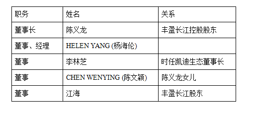 其次,中盈長江與陽光凱迪互相持股,中盈長江持有陽光凱迪20.59%,陽光凱迪持有中盈長江80%股份。中盈長江的董事長唐秀麗為陽光凱迪行管中心總經(jīng)理,總經(jīng)理楊曉璇為陳義龍老婆楊淑雯的親侄女。值得注意的是,中盈長江還有一個董事叫HELEN YANG(楊海倫),其與陳義龍老婆同姓,但是否有關(guān)聯(lián)記者尚未掌握。