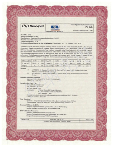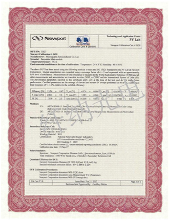 目前,該成果已獲得位于美國(guó)蒙大拿州的國(guó)際測(cè)試中心Newport公司的權(quán)威認(rèn)證,Newport實(shí)驗(yàn)室是全球六家被認(rèn)可的效率認(rèn)證機(jī)構(gòu)之一。
