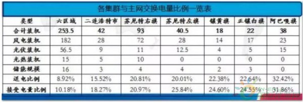 根據(jù)建模仿真分析數(shù)據(jù)結(jié)果,對集群與主網(wǎng)電力平衡分析,進(jìn)一步研究集群運(yùn)行與主網(wǎng)運(yùn)行電力交換情況。規(guī)劃區(qū)域內(nèi)(除阿巴嘎旗集群外)其他各集群與主網(wǎng)電量交換比例均控制在25%以內(nèi),六區(qū)域集群聯(lián)網(wǎng)運(yùn)行后向主網(wǎng)電量送電比例為8.92%,接受電量比例為10.18%。可再生能源電源與用電負(fù)荷電力平衡結(jié)果較好。