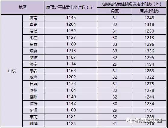 山東省太陽能資源從地域分布來看,從東向西逐漸增加。各市的太陽能資源概況見下表。