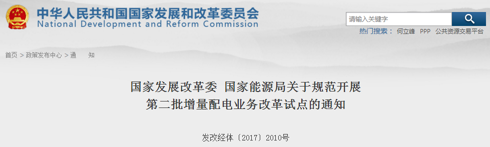 第二批增量配電業(yè)務(wù)改革試點(diǎn)的通知