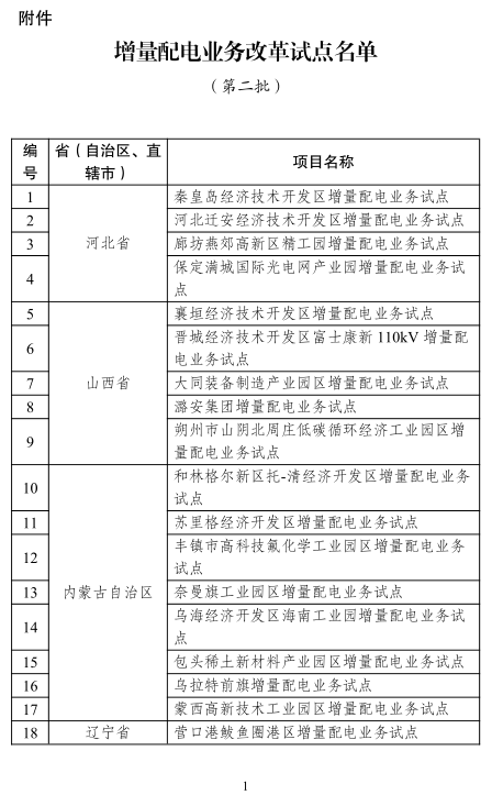 附件:增量配電業(yè)務(wù)改革試點(diǎn)名單(第二批)