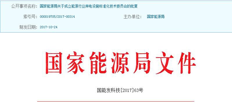 國(guó)家能源局關(guān)于成立能源行業(yè)岸電設(shè)施