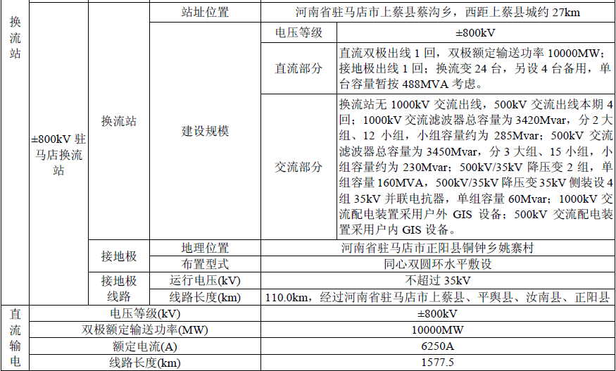 直流額定電壓:±800kV;雙極額定輸送功率:10000MW。