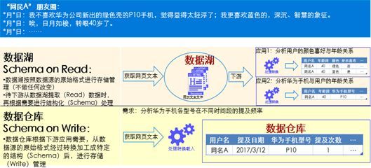 2. 數(shù)據(jù)處理模式:在我們可以加載到數(shù)據(jù)倉庫中的數(shù)據(jù),我們首先需要定義好它,這叫做寫時(shí)模式(Schema-On-Write)。而對于數(shù)據(jù)湖,您只需加載原始數(shù)據(jù),然后,當(dāng)您準(zhǔn)備使用數(shù)據(jù)時(shí),就給它一個(gè)定義,這叫做讀時(shí)模式(Schema-On-Read)。這是兩種截然不同的數(shù)據(jù)處理方法。因?yàn)閿?shù)據(jù)湖是在數(shù)據(jù)到使用時(shí)再定義模型結(jié)構(gòu),因此提高了數(shù)據(jù)模型定義的靈活性,可滿足更多不同上層業(yè)務(wù)的高效率分析訴求。