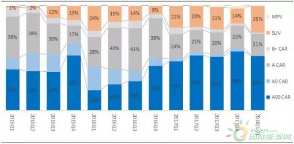 2018年1-2月份中國新能源乘用車主要細(xì)分市場銷量結(jié)構(gòu)