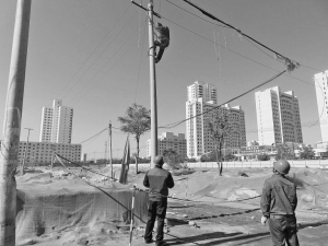 武威供電公司員工拆除棚改區(qū)下戶線,在現(xiàn)場做好安全監(jiān)護(hù)工作。