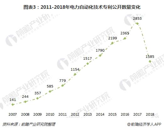 在公開專利數(shù)量方面,2011-2017年,我國電力自動化技術(shù)專利公開數(shù)量同樣呈上升趨勢。2017年,我國電力自動化技術(shù)專利公開數(shù)量為2853項(xiàng),達(dá)到近年來最大值;截至2018年7月,專利公開數(shù)量為1585項(xiàng)。
